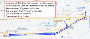 bike lane (cycle track) on Michigan Ave through downtown Kalamazoo that will be a